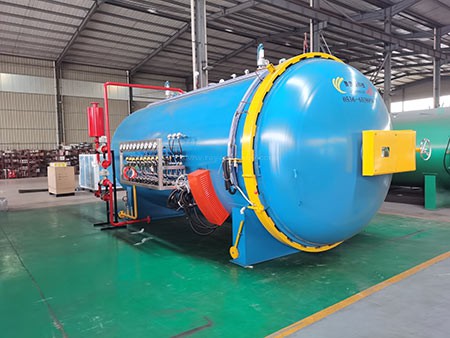 4、熱壓固化:將真空袋系統(tǒng)合并成熱壓罐,連接真空管,關(guān)閉熱壓罐,然后根據(jù)確定的工藝條件真空/加熱/加入壓力固化。